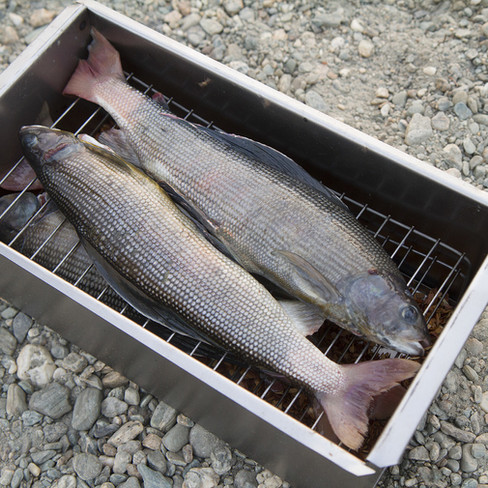 River Big-Hadata has always been to have a water barrier on the way to Lake Big-Shchuchye. This year, the river was used as a transport artery and fishing spot. Hadata - right tributary of the Yamal river Shchuchya. It originates in the eponymous lake deep in the mountains of the Polar Urals and flows through the territory of Gorno-Hadatinskiy nature park. Visiting these places requires special permission from the relevant environmental authorities. In these places, catch grayling over 50 cm. We took them four fish. The rest were released. Smoked Grayling Super! Very tasty fish.The weather, too, was lucky. Temperature is +30, water +20 Celsius.
